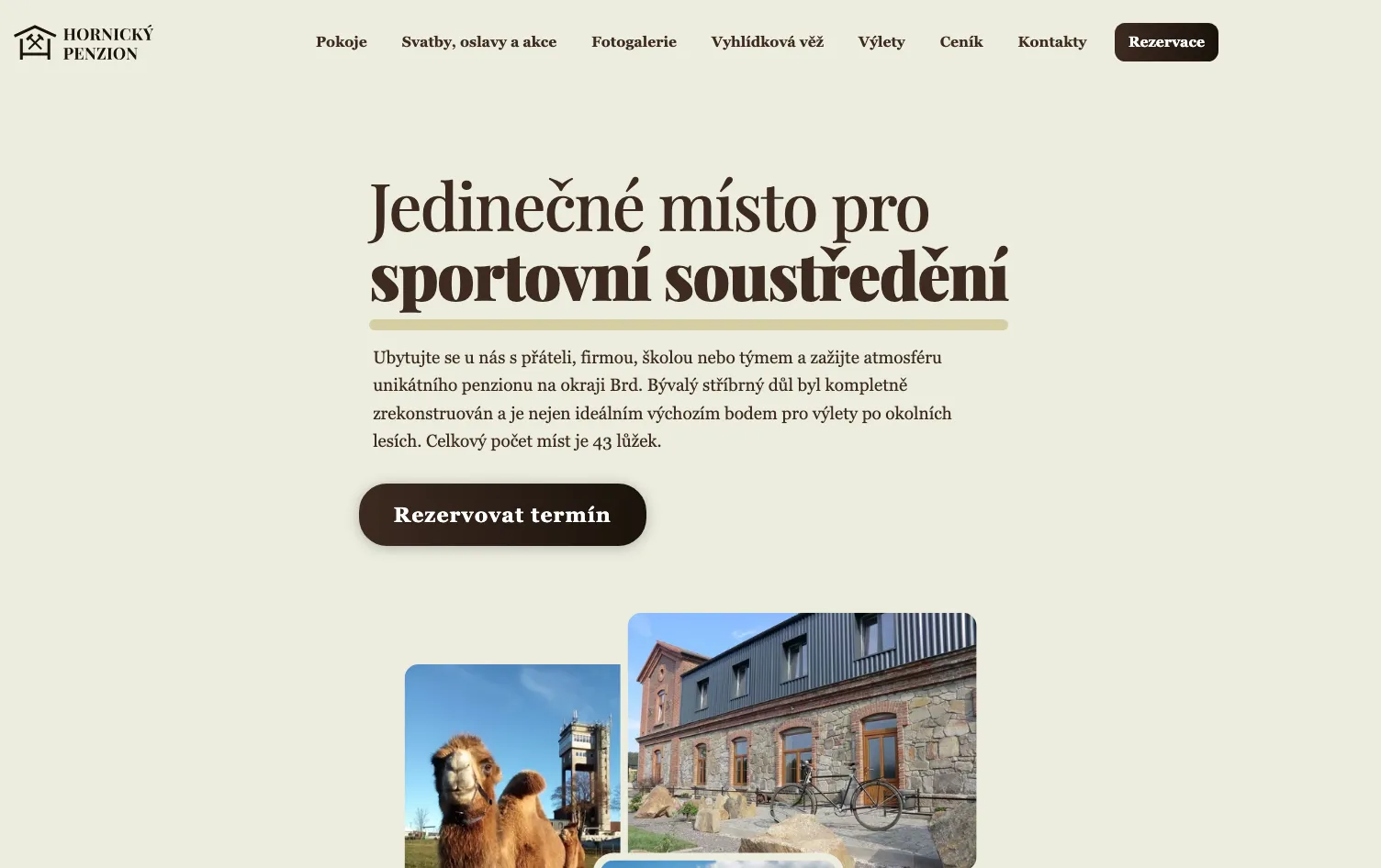A website for a guesthouse with a mining theme in the Czech Republic. Guests need to see the rooms, check availability, and book — the owners need to update prices, photos, and seasonal offers without calling me.